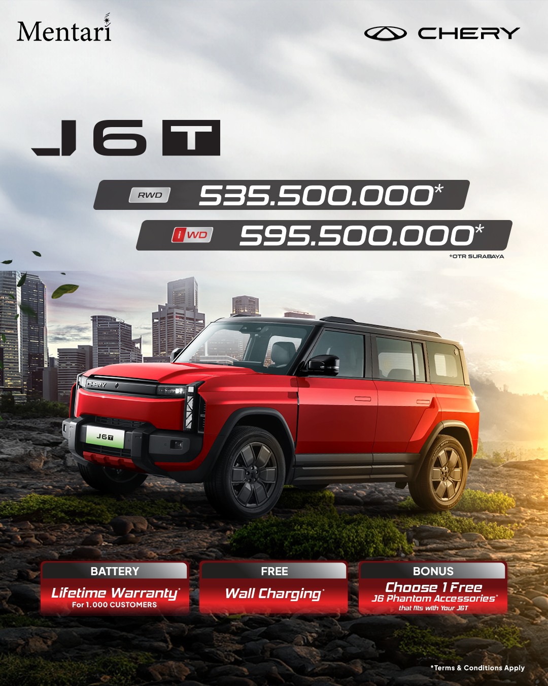 Free charging set, kaca film, service & spare part 4 tahun/60.000 KM